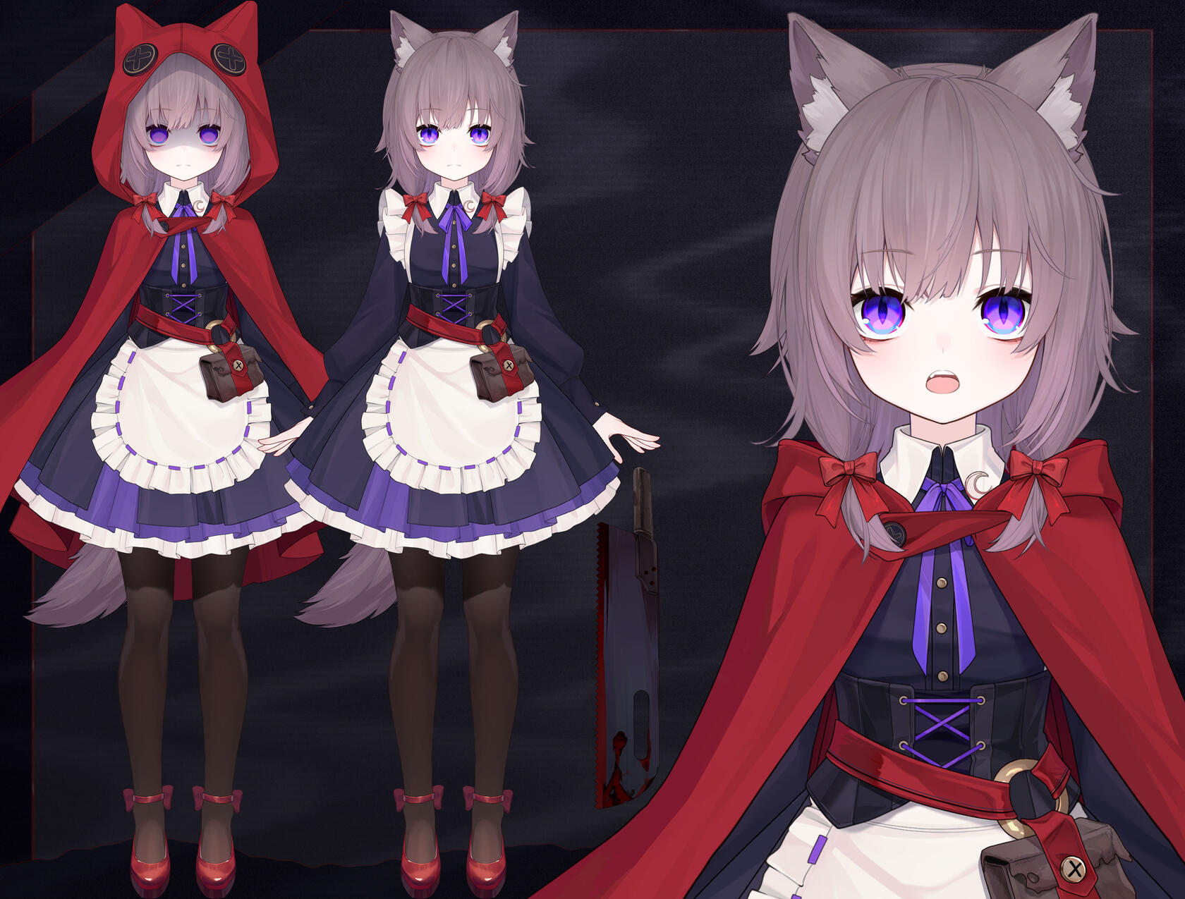 • Does NOT have human ears, only wolf ears-!• Bust is small, not entirely flat-!• Prefers to wear hood while hunting• Shorter in the school uniform, wearing short loafers