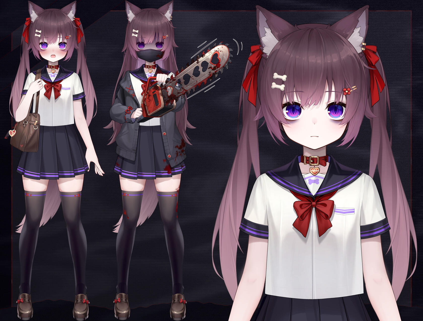 • Does NOT have human ears, only wolf ears-!• Bust is small, not entirely flat-!• Prefers to wear hood while hunting• Shorter in the school uniform, wearing short loafers
